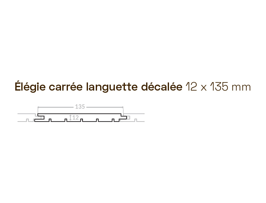 - Surface rabotée brossée (sauf profil Élégie carrée languette décalée, surface brute de sciage)