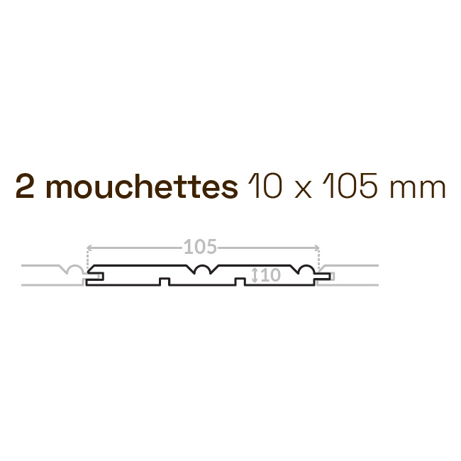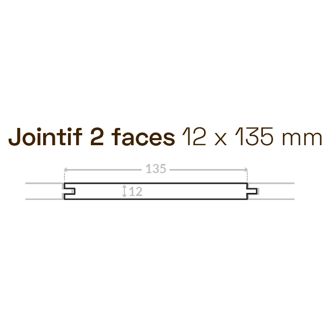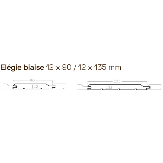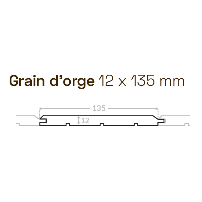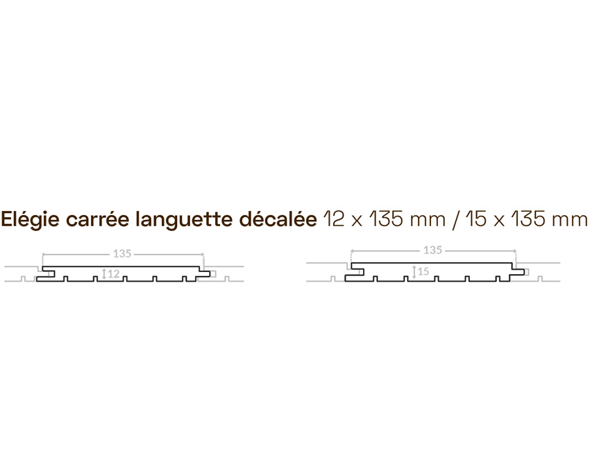 - Surface rabotée (sauf profil Élégie carrée languette décalée 12 x 135 mm, existe aussi en brut de sciage)