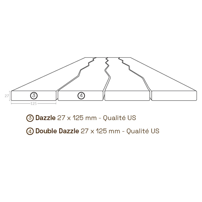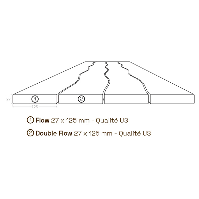 Lames en Pin Rouge du Nord traitées Classe 4 pour une excellente durabilité de la terrasse. Des profils en usinage 3D innovant.