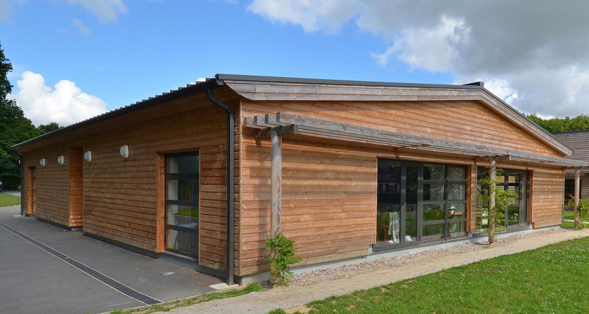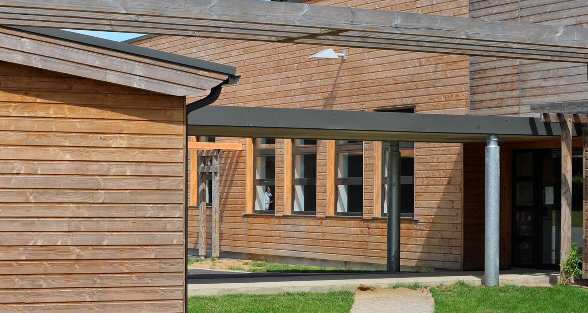 Cette école a choisi le bardage bois et le Douglas pour toutes les façades de ses bâtiments. Un chantier réalisé en deux temps qui permet de comparer sur les photos ci-dessous le bardage plus ancien déjà grisé à droite, avec la teinte du Douglas plus récemment posé.
