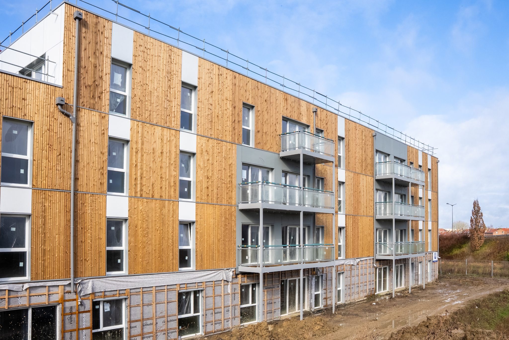 Près d’Armentières, à quelques minutes de la métropole lilloise, la résidence Pavillon Musical prolonge dans sa conception la qualité de vie du village d’Erquinghem-Lys. Entourés d’espaces verts offerts par les nombreux balcons, terrasses et jardins, les 38 appartements bénéficient du confort et de l’excellence thermique et environnementale d’une construction qui privilégie le bois. Équipée également de panneaux photovoltaïques installés sur la toiture végétalisée, la résidence répond par l’ensemble de ses choix constructifs au seuil 2025 de la RE2020. Et permettra à ses futurs habitants de réaliser de substantielles économies en matière énergétique.