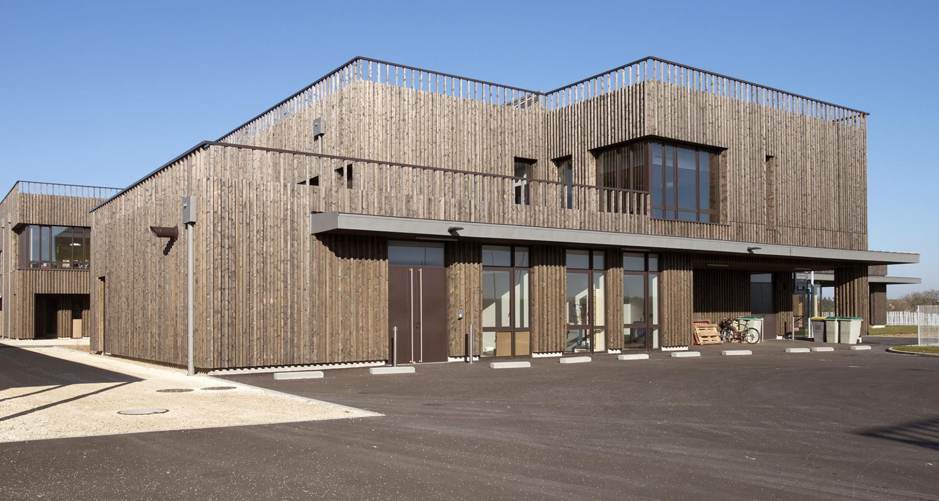 Quoi de mieux pour des lycéens que d’étudier dans un tel cadre ! Cette magnifique extension au Lycée Léonard de Vinci, situé à Montaigu en Vendée, a été réalisée avec une vêture en bois fabriquée sur-mesure pour le chantier. Des poteaux et planches en Sapin du Nord, posés à la suédoise, avec un recouvrement pour un effet volume très réussi !