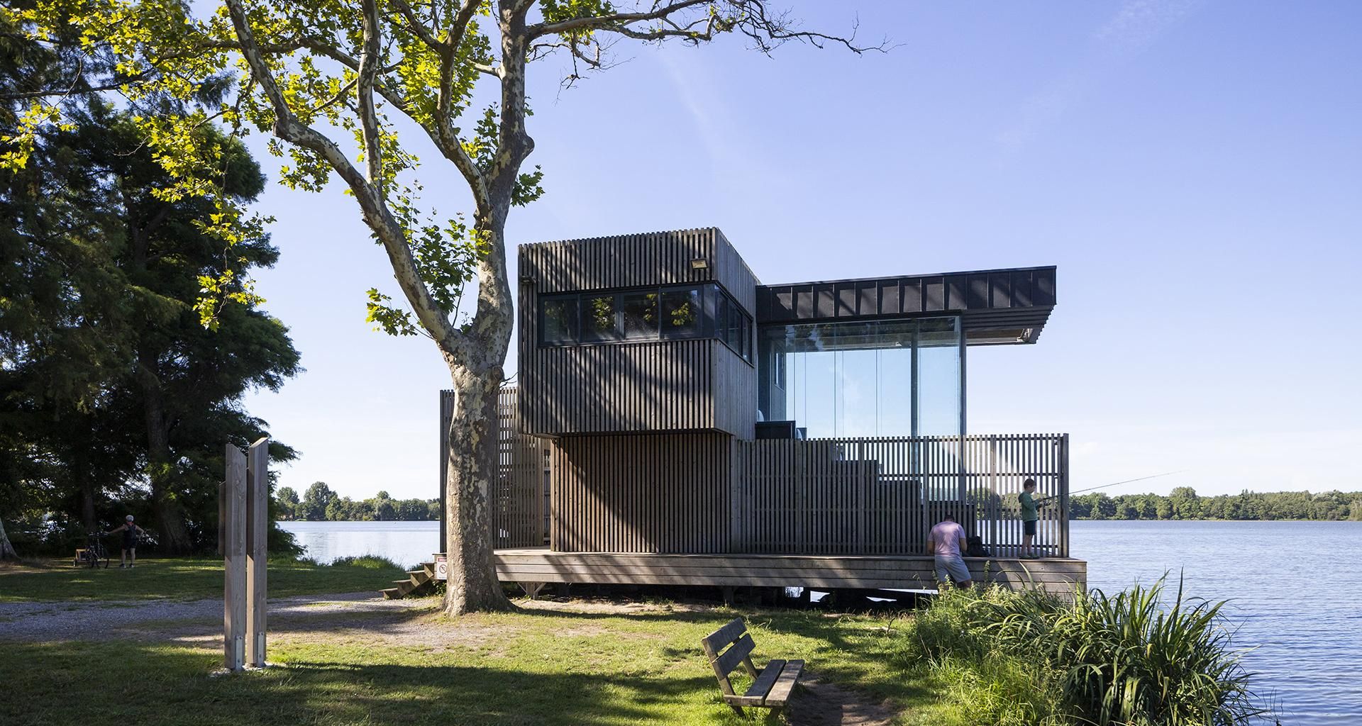 Construite à la Pointe des Vergnes, la tour d’arrivée a montré son efficacité pour le championnat de ligue d’aviron. Cet ensemble recouvert de bois (profil Rythmix® Carré 40×40 mm préservé marron) s’intègre parfaitement dans l’environnement. C’est une réussite visuelle !