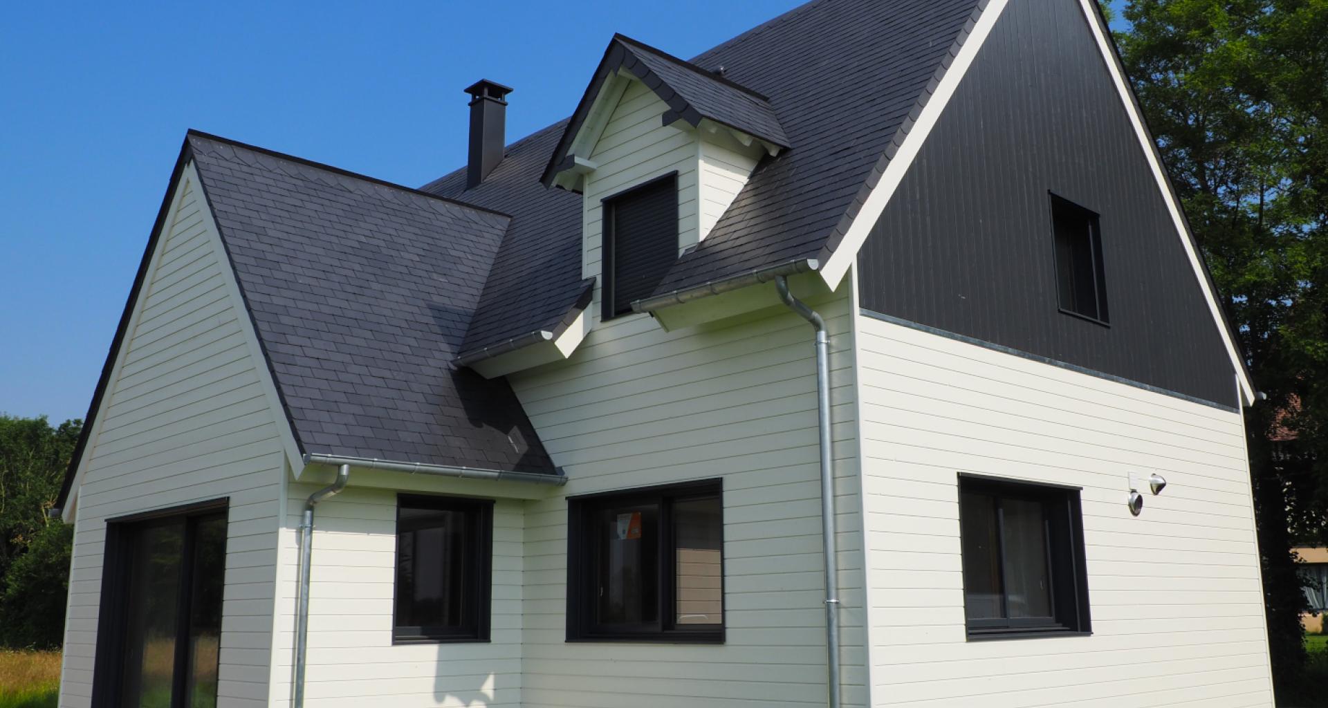 Le bardage Line au design Joint Creux, apporte de la modernité à cette maison en campagne. De couleur blanc et gris anthracite, les lames se marient parfaitement avec les menuiseries en aluminium.
